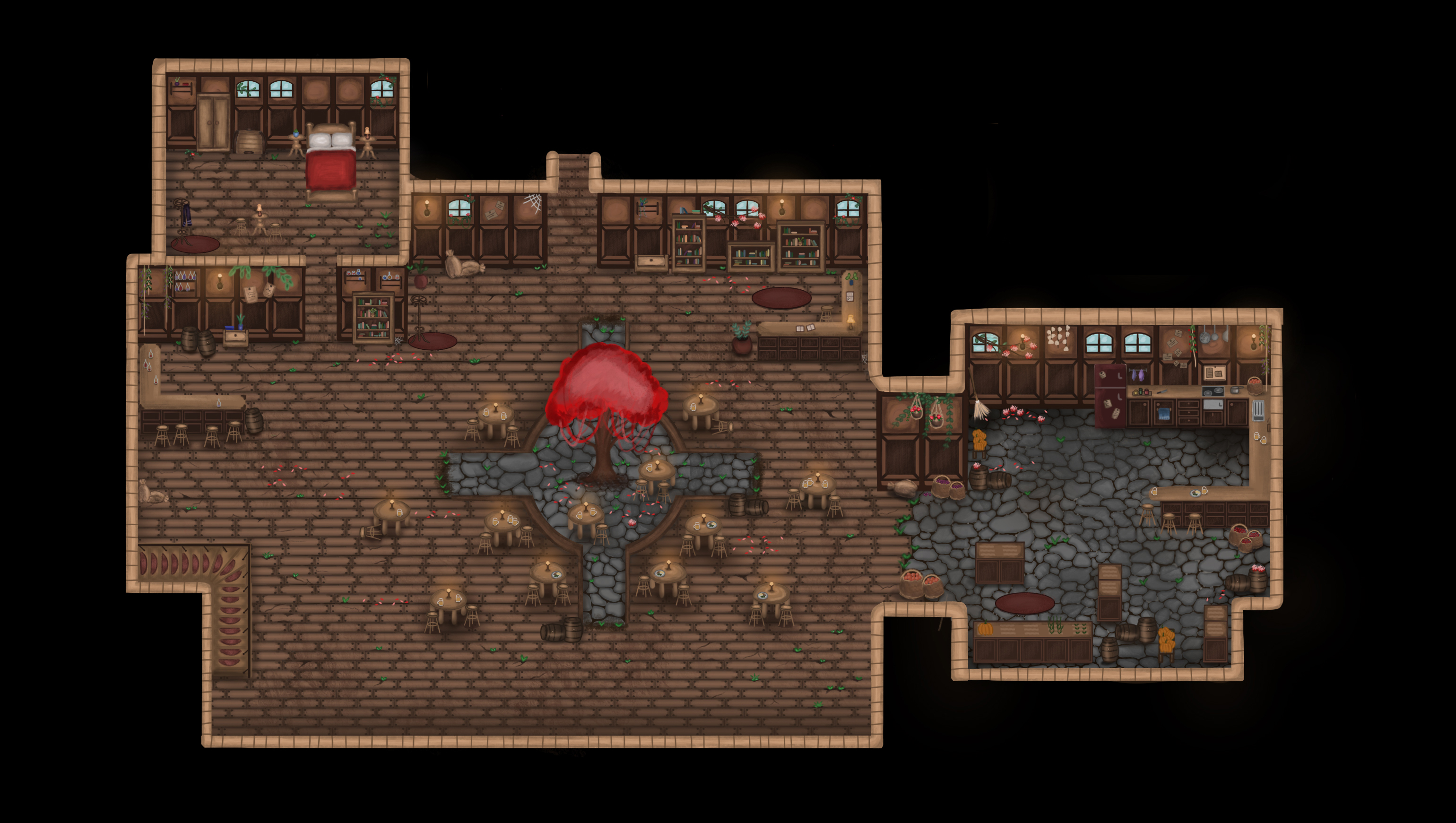 The project is currently being developed as a side project together with a close friend. At the moment, I am mainly working on level maps and concept art, defining the visual language, world structure, and overall atmosphere of the game.